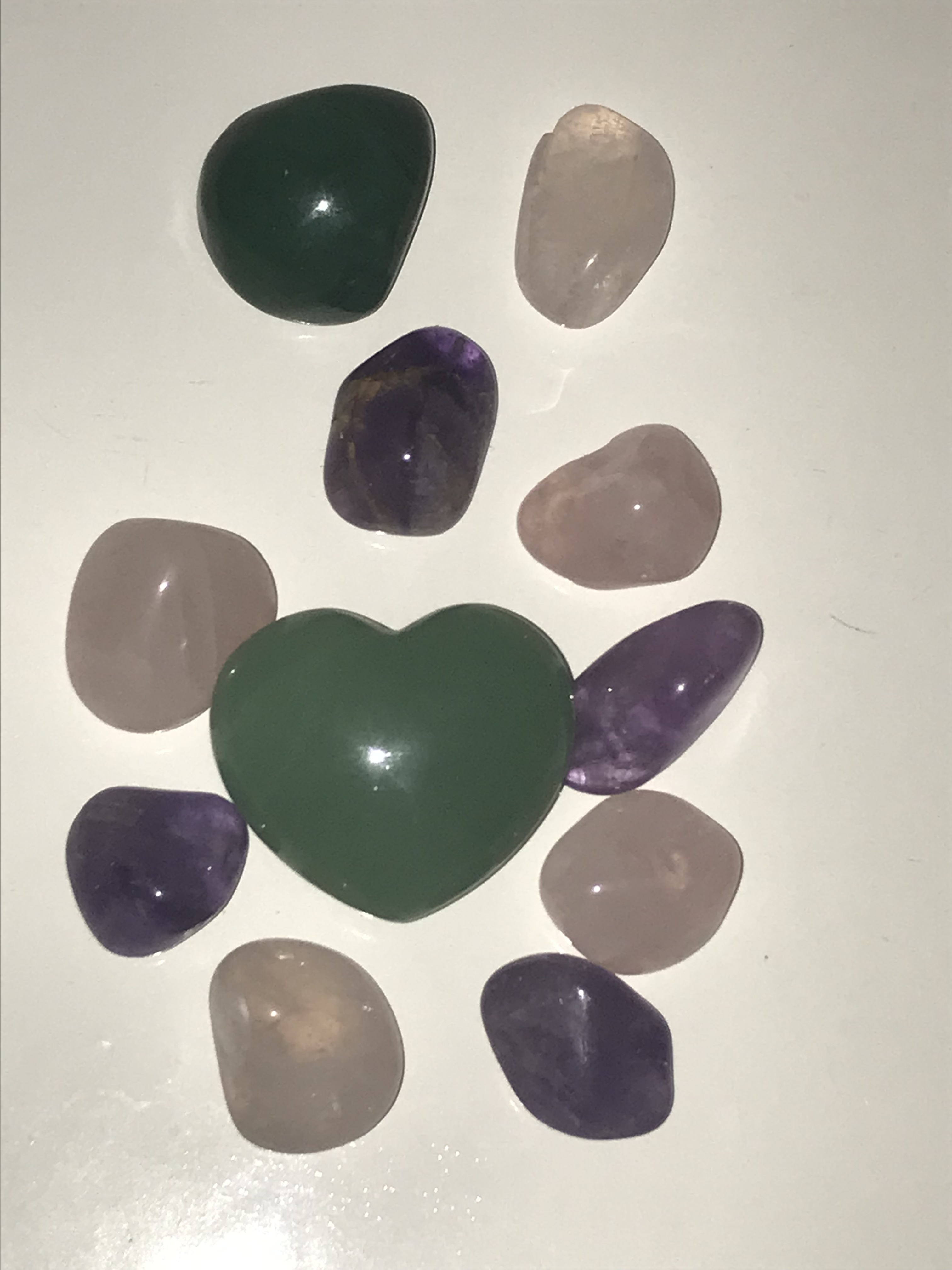 Crystals are a great help. I store Reiki in all sorts of stones when I have time to spare and later, I can draw from these deposits as needed. I’m usually wearing a crystal necklace (pink quartz is the current fave), carrying a few in my pocket, or hanging out with them. You can find families of crystals on my desk, nightstand, and kitchen counter. Several join me in the bathtub along with the salts and essential oils.