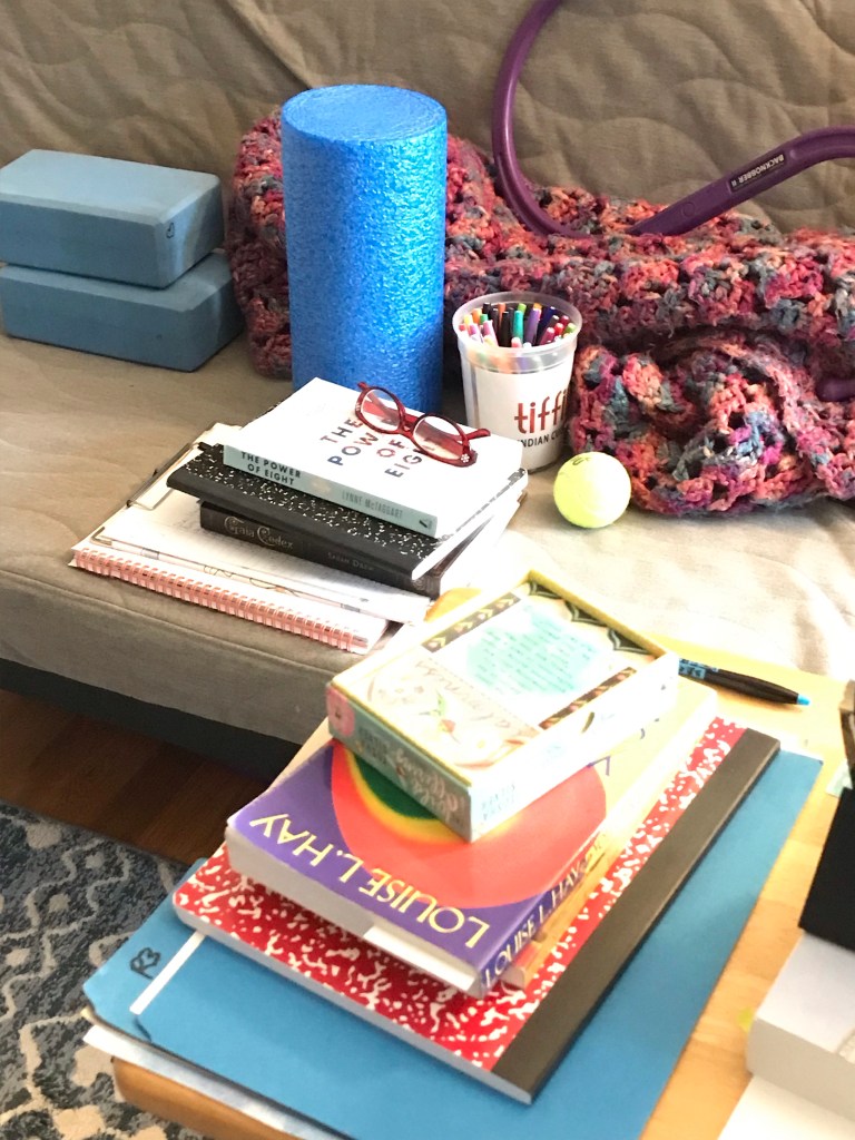 For the greater part of my days, I’m camped out of my Bio-Mat, surrounded by a stack of books that I’ve wanted to read for ages, a cup of tea, my journal, and an array of colorful markers. There’s something about having a beautiful notebook and great pens that makes the task of inner exploration seem less daunting. As do my comfy pajamas- it’s hard to take things too seriously when you’re covered in lemons and wearing your favorite fuzzy socks. 🙂