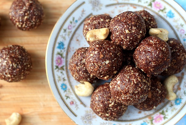 My favorite of these desserts can easily pass as brownies, even amongst non-health-food eaters. They’re often called “bliss balls”, and with good reason!